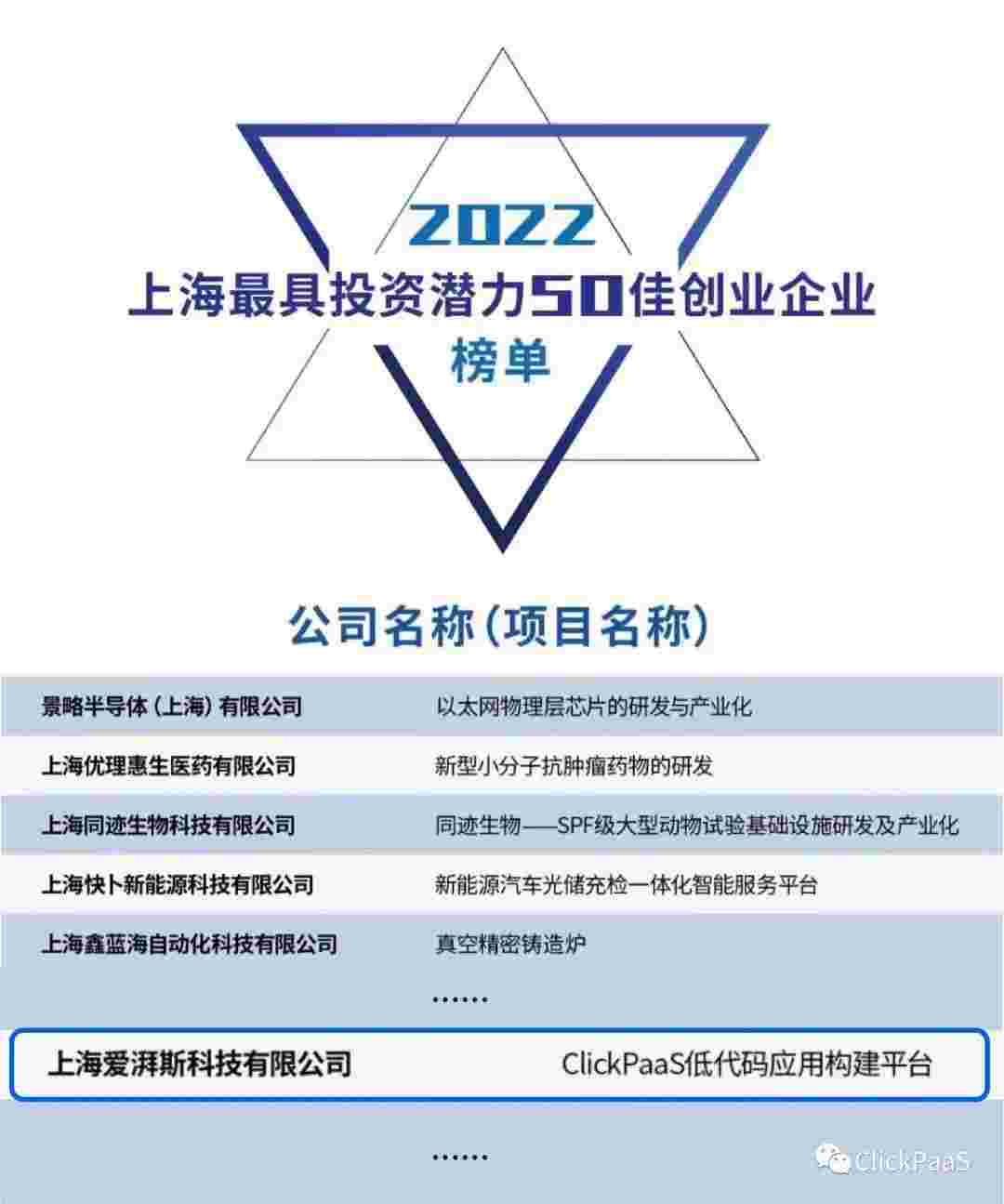 VIVO钱包 作为国内低代码PaaS平台的领军企业,,,与120家创企入围角逐。。期间接受了来自德同资本、、、、领中资本等知名投资机构的10位投资人组成专家评委团的背靠背盲选。。。。并最终入围“2022上海最具投资潜力50佳创业企业”榜单,,被列入“上海市重点培育创业企业库”。。