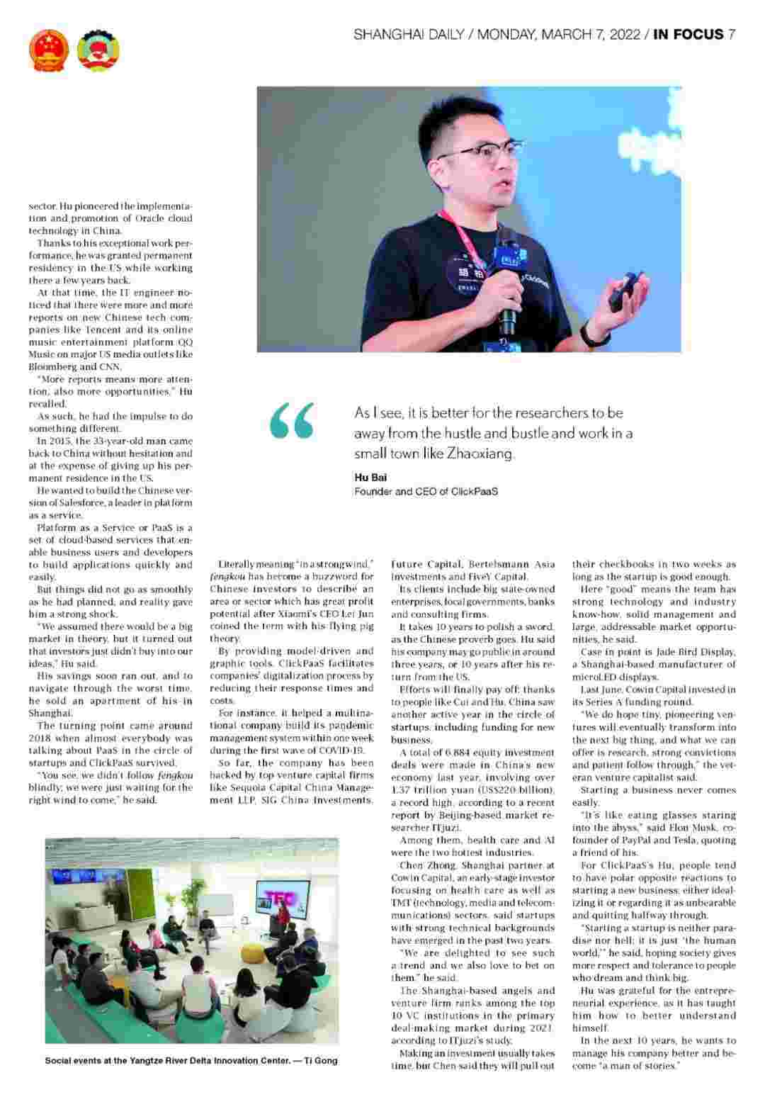 《上海日报》专访VIVO钱包创始人、、、CEO胡柏,,,,探究其创业背后的故事!!!!